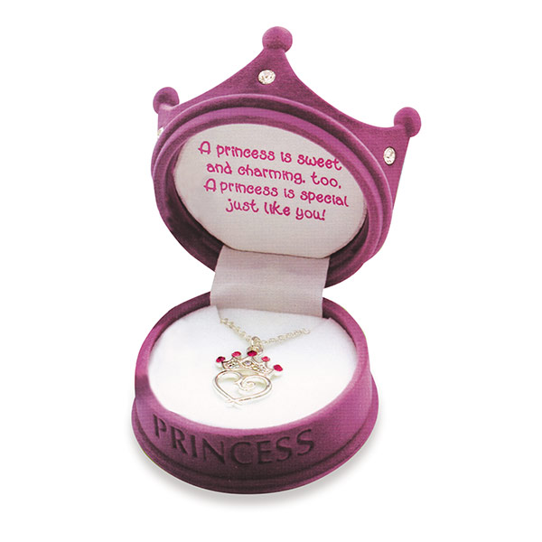 Adorned with genuine European crystals and sterling silver finish this great little necklace arrives in a darling keepsake crown gift box. Gift card included. For children 6 years and older.